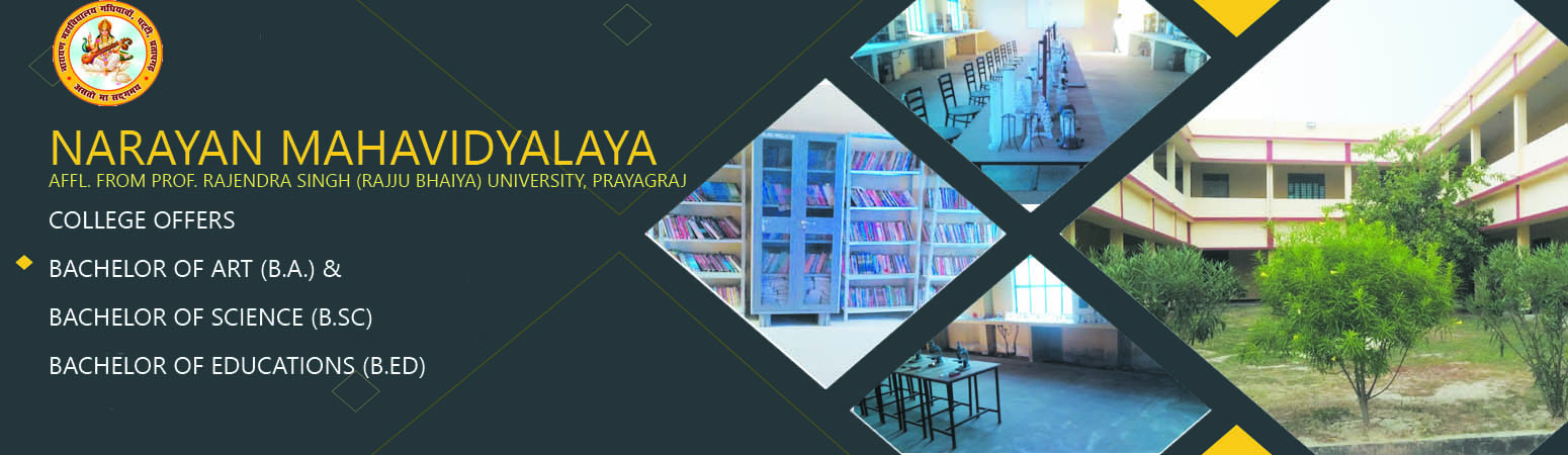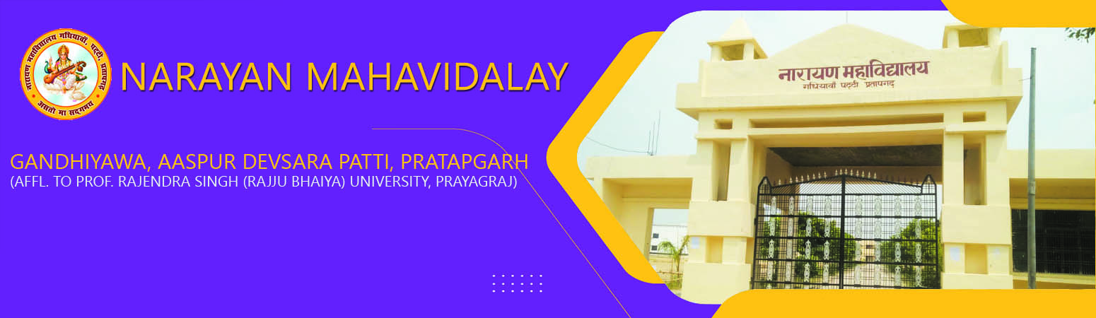 “Narayan Degree College was established in year 2012 in the memory of great son of native soil Pt. Raj Narayan Pandey with a vision to provide equal higher education opportunities to the students and aspirants of local surrounding area of every class. This college is managed by a trust called "Narayan Memorial Charitable Trust".